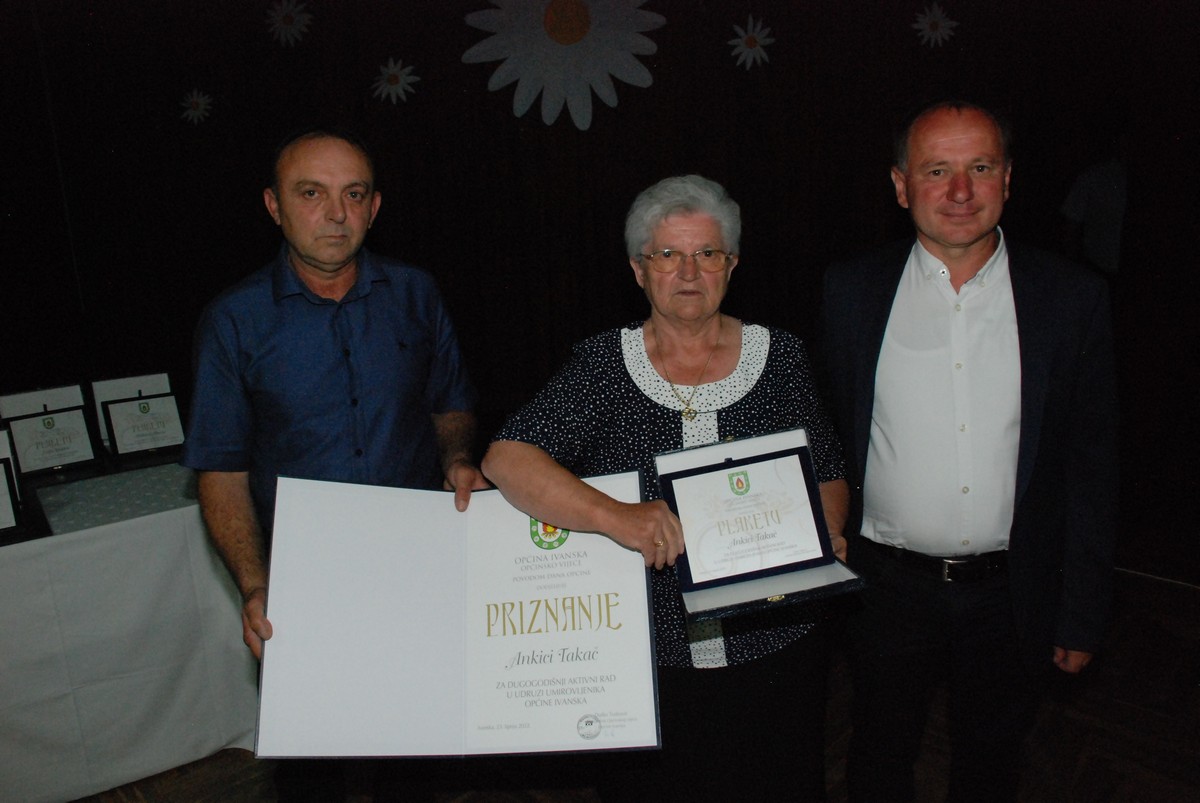 Ove godine općinska priznanja dobili su Ankica Takač za dugogodišnji aktivni rad u Udruzi umirovljenika Općine Ivanska, Mladen Kobra i Ivan Brkljaš za dugogodišnji predani rad u DVD-u Stara Ploščica, Mladen Sremec za 50-godišnji aktivni rad u RK Ivanska, Željka Modrić za značajna ostvarenja na području odgojno-obrazovnog rada i Mislav Albert za hrabrost i nesebičnu pomoć prilikom spašavanja i gašenja požara na automobilu.